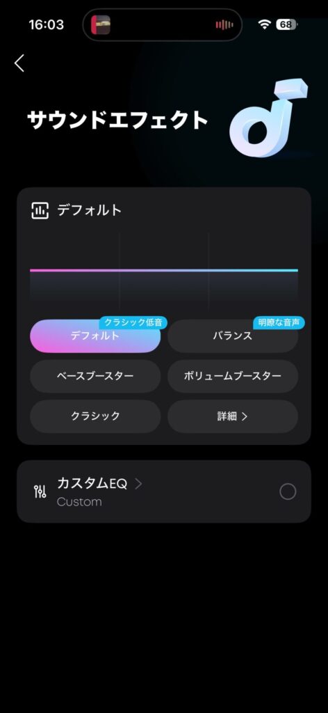 音質に関しては、低音が控えめになりがちなオープンイヤーですが、アプリのイコライザー機能で「BassUp」をオンにすると、ベースラインやドラムのキック音がしっかり輪郭を持ちます。5,000円台のスポーツ用イヤホンとしては十分な音質だと感じました。